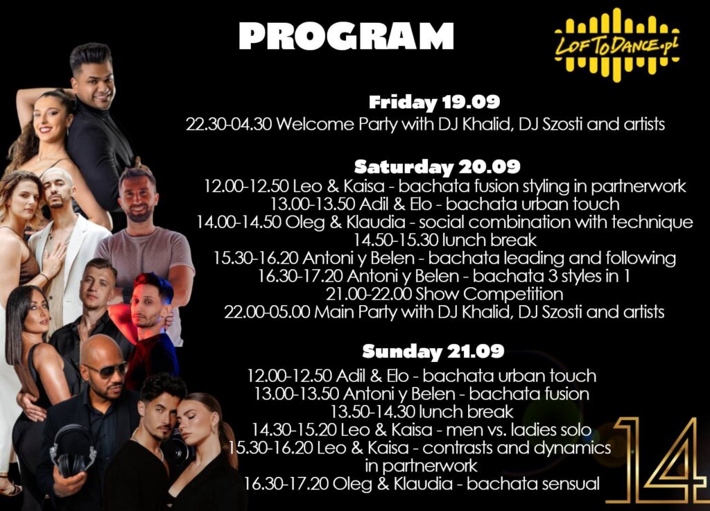 Z okazji urodzin mamy dla Was cudowne warsztaty z mega gwiazdami, epickie imprezy z topowymi DJami, ogólnopolski konkurs choreograficzny dla par i grup, pokazy, konkursy, niespodzianki i oczywiście niezapomniane emocje