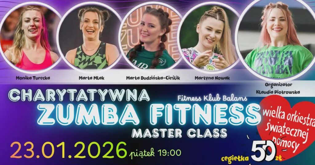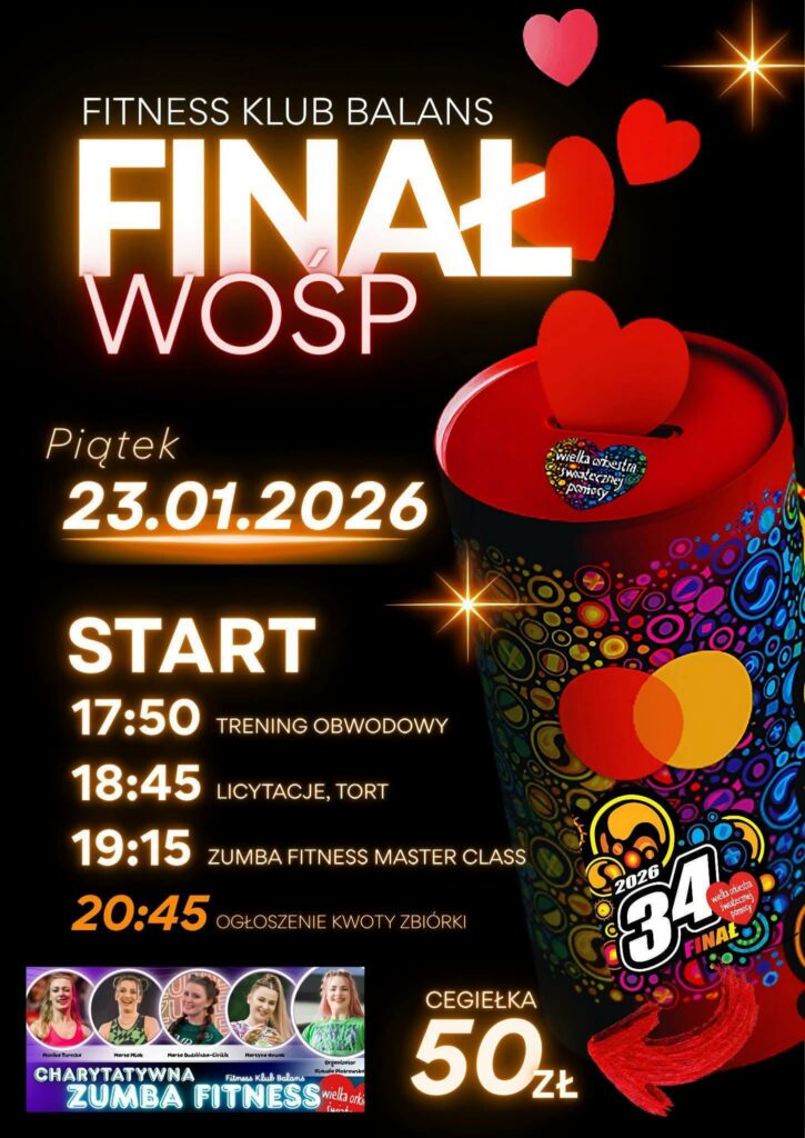 Już 23.01.2026 godz 19:15 startujemy z Zumba Fitness Master Class na FINAŁ WOŚP w Fitness Klub Balans